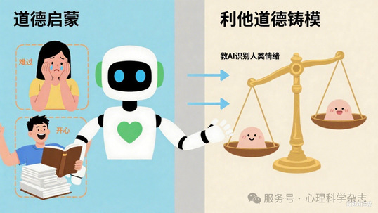 这个阶段对AI进行“道德启蒙”—— 如教AI识别人类情绪。通过分析大量道德问题案例,教AI理解人类情感和社会期望,学会何时及如何共情人类,成为有“情商”的AI。